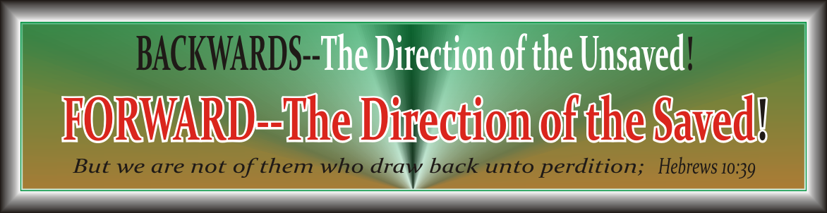 However, an elect child of God has no option. Backward is the direction away from God. And an elect child of God cannot but stay with and follow their Lord. The elect child of God truly has no where to go but forward continuing to follow the guiding light of the Word of God the Bible.